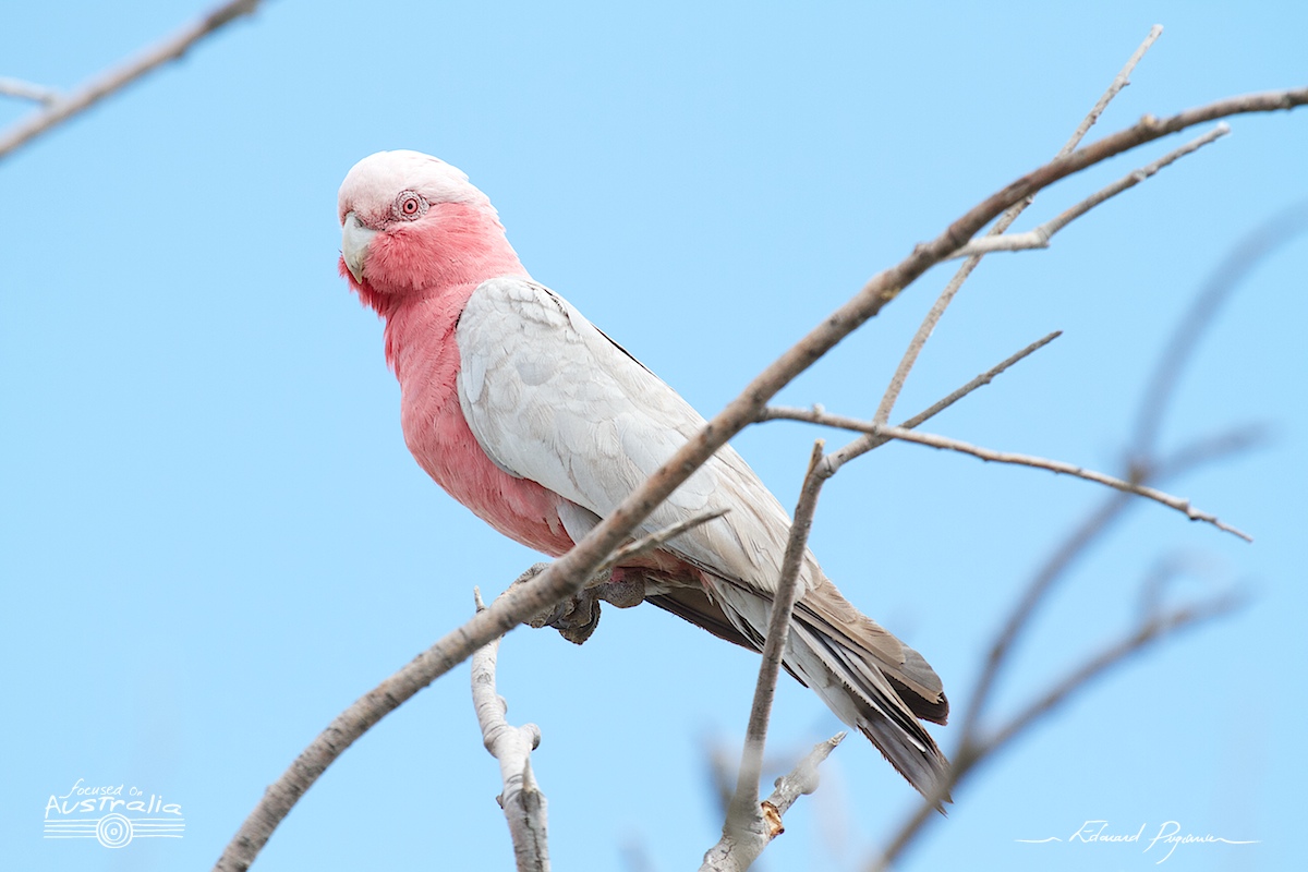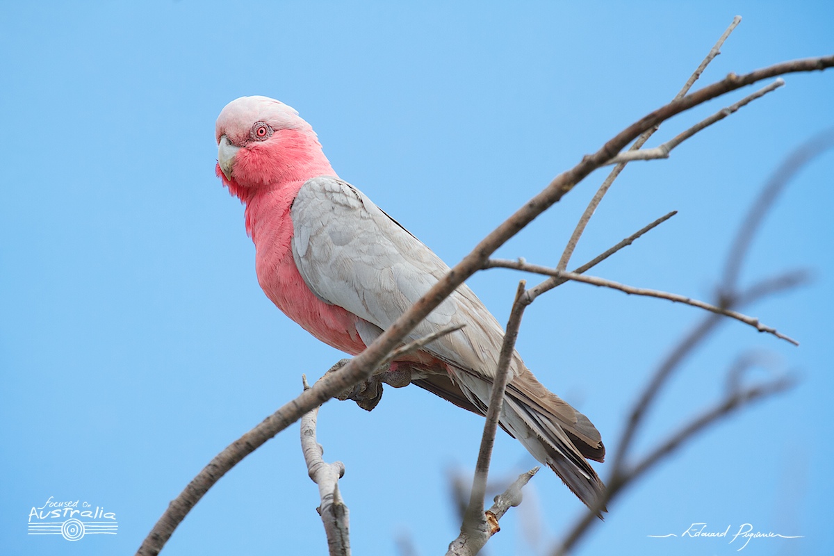 Fin d'une journée de route et arrivée dans le Parc National du Kakadu pour la nuit. Marion prend cette superbe photo à 24 mm du coucher de soleil qui enflamme les arbres ; je lui emboite le pas sur le cliché suivant, mais au téléobjectif @ 400 mm (équiv. 640 mm)